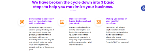 This section of the Carmen-Cars.com review explores the business-oriented service provided by Carmen Cars, designed to optimize your company’s vehicle fleet management. The organization recognizes the importance of efficient and cost-effective fleet management, breaking it down into three fundamental steps for maximum business advantage.